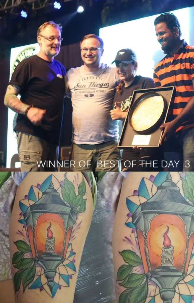 Mangesh has actively participated in multiple tattoo conventions and has received several awards for his work.